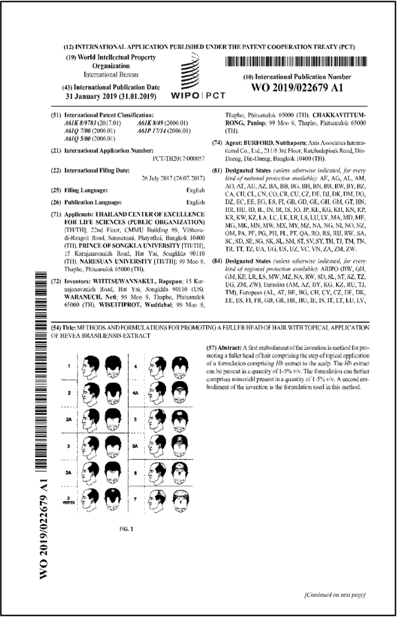 - Wititsuwannakul, R.(Inventor) “Skin whitening composition containing extracts derived from natural rubber latex” The People’s Replubilc of China Patent No. ZL10166303.0 (2013)